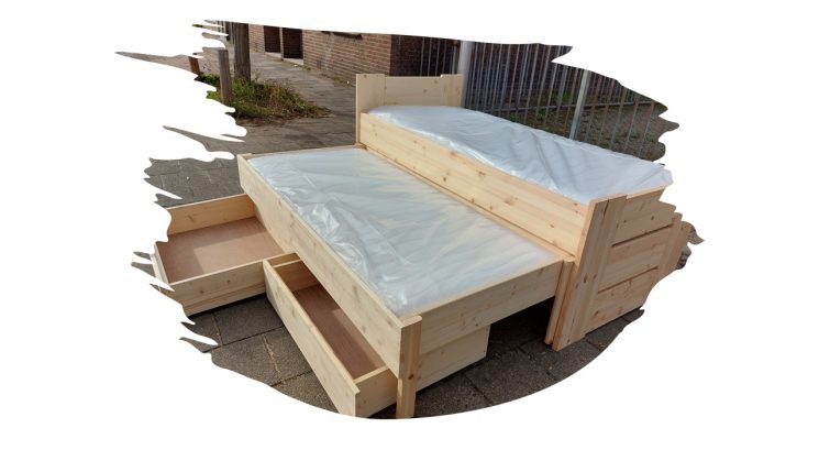 Compleet geleverd bed met bodems, matrassen, bezorging én montage! (u kunt bij bestelling in het verdere proces “afhalen” aanvinken, wij veranderen dat nadien)